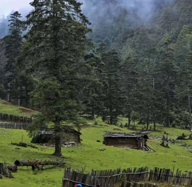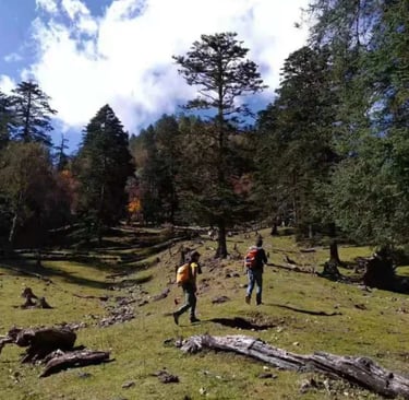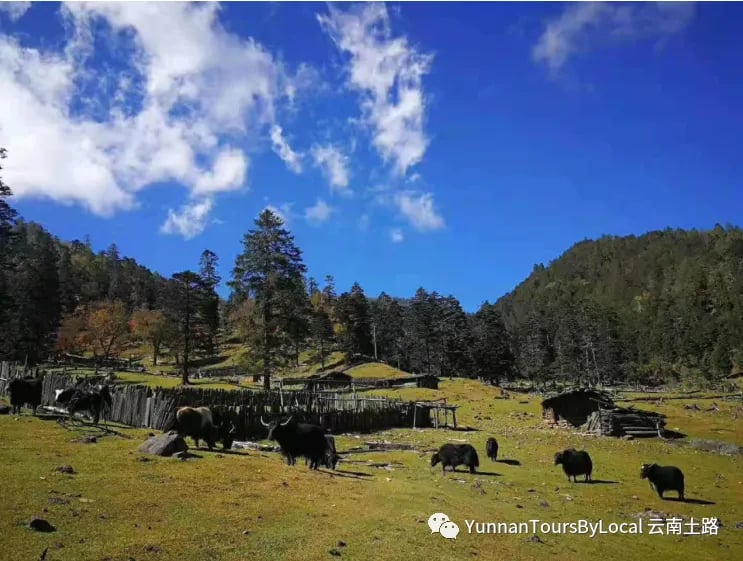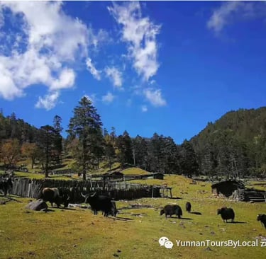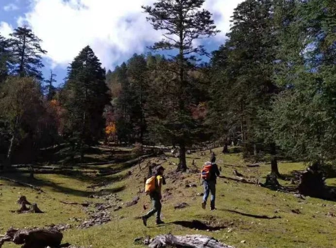 Drive for 30 minutes along the mountain road, then begin hiking from an altitude of 3000 metres to 3900 metres. Continue through the forest to pasture land, with herder huts and yaks, passing rockland azalea bushes, and arrive at No. 2 pasture land. Afterwards, set up camp and cook nearby.