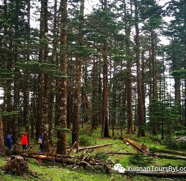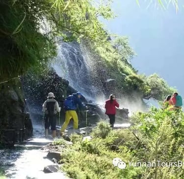 Hike about 4-5 hours down to Haba Village, through forest, waterfalls and open pasture land, throug an ethnic Yi Village. Meet the driver at the end of hike, and drive 4-6 hours to Lijiang.