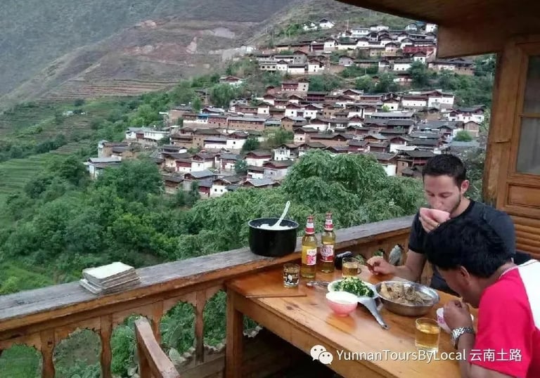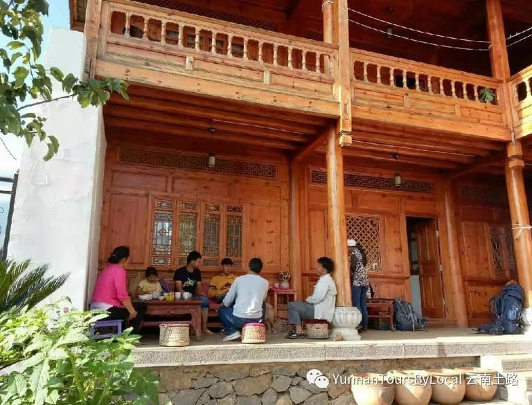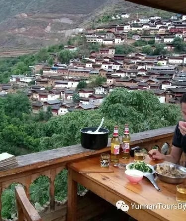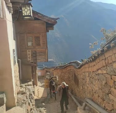 Enjoy a hearty breakfast at the lovely guesthouse. Begin with a 3.3-kilometre hike on a cement and mountain path, followed by about 2 kilometres on a rocky trail with stairs down to Yanke Village. This should take approximately 3 hours in total. Afterwards, walk to Yanke Village, where we will have lunch with a local Naxi family. Then, hike along an almost flat trail with some metal stairs to Baoshan Stone Town for about 7 kilometres, ending the day at a small guesthouse. Take some time to rest!