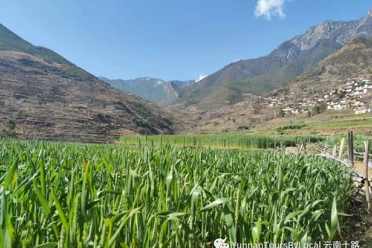 Drive two hours to Tiger Leaping Gorge, hike for seven hours to Walnut Grove, and stay overnight. About two hours climbing, two hours descending, and three hours on a flat mountain path in one day. Total of seven hours, depending on your pace.